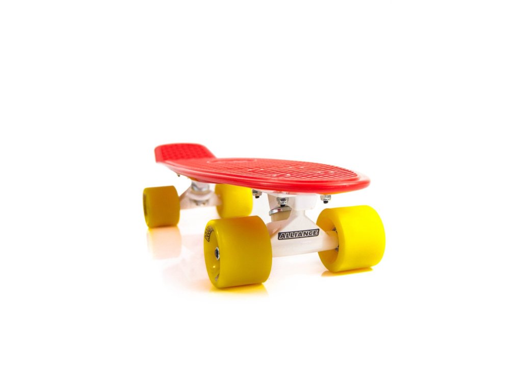 - Alliance cruiser red/white/yellow - Ložiská ABEC 7 - Aluminiové trucky - Kolieska Alliance 59 mm - Rozmer 6,5" x 23,5 " - Cruiser inšpirovaný plastovými doskami z 80 tych rokov